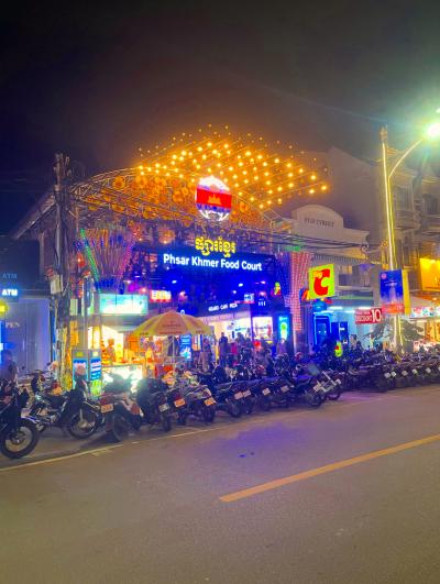毎日19:00~24:00に営業しています。会場ではドリンクや料理(屋台・レストラン)、生演奏などの音楽をお楽しみいただけます。アプサラダンスショーは19:30~20:30に上演します。入場は無料です。パブストリートの賑やかなエリアに新しくオープンした「プサール・クメール・フードコート」は、夜のひと