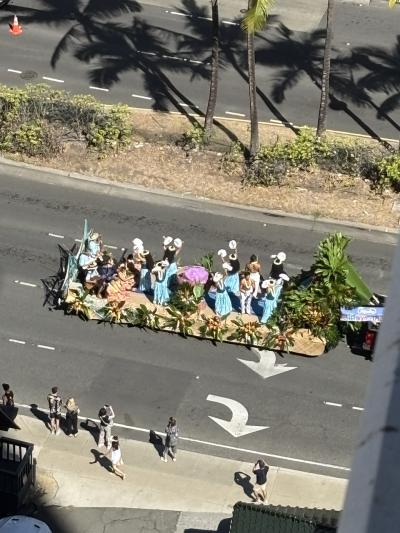 2025.9.27 Aloha Festival77th Ann. Floral Paradeハワイ到着翌日にパレードが9月に何度か行ってるけど、このパレードを見れるのは初めて。最初の予定ではワイキキ中心部のカラカウア通りに行って見る予定だったけど、アラモアナからスタートするならカリアタワーから見え